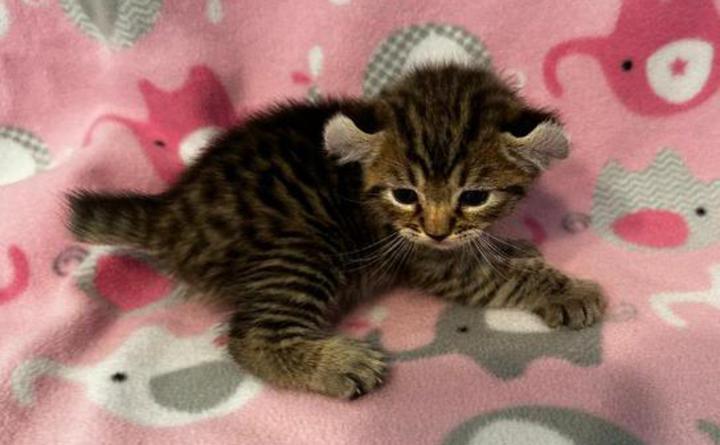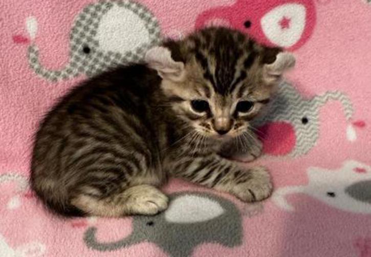 4a....Brown Spotted Tabby Female w/curled ears, 4 polydactyl feet & shortened tail. I am available