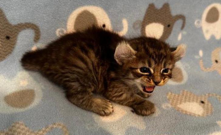 2L....Super Rare Cinnamon Ticked Female with curled ears, 2 polydactyl feet & shortened tail.