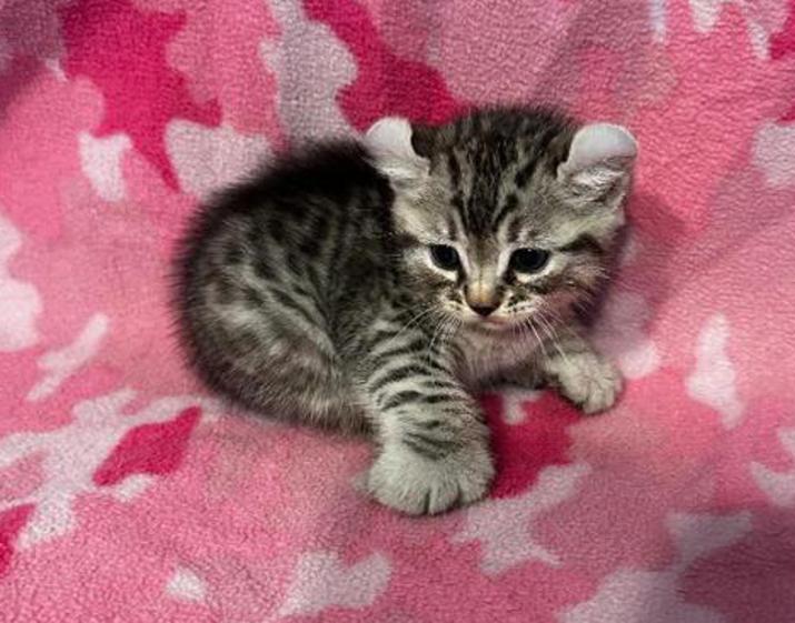 2a....Silver/Black Spotted Tabby Male w/curled ears, 4 polydactyl feet & shortened tail. Sold I will be living in TX