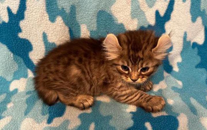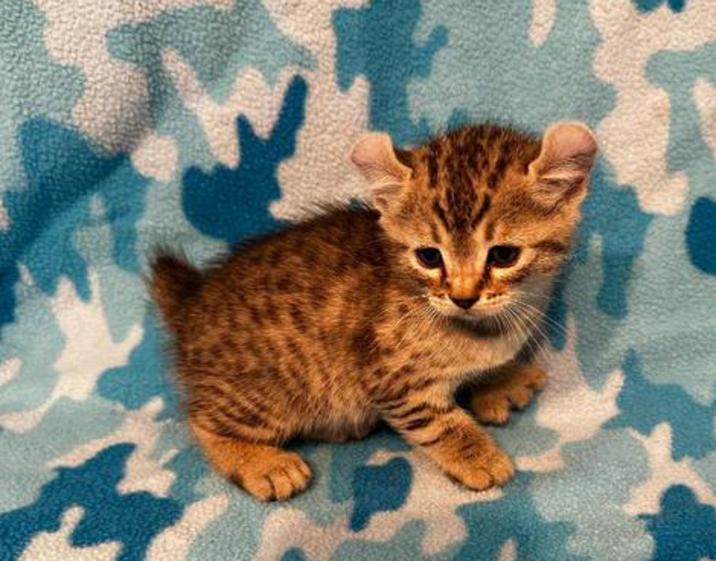 5a....Brown Spotted Tabby Male w/curled ears, 2 polydactyl feet & shortened tail. Sold I will be living in FL