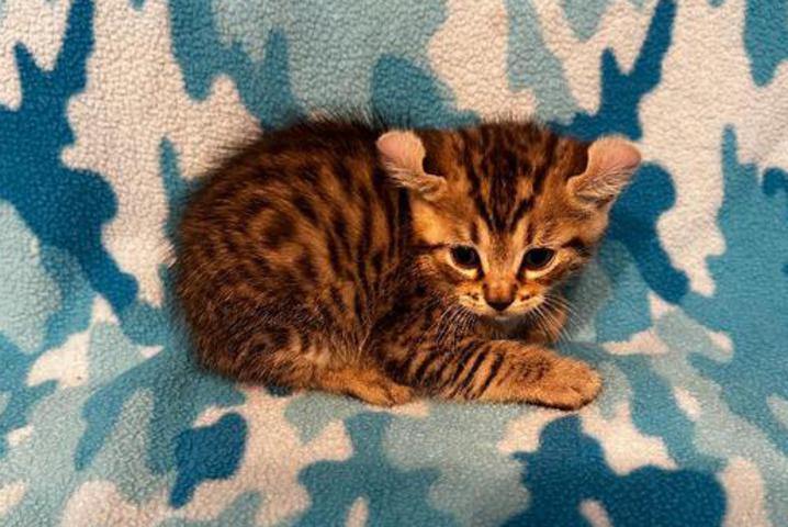 4a....Brown Spotted Tabby Female w/curled ears, 4 polydactyl feet & shortened tail. sold i will be living in CT