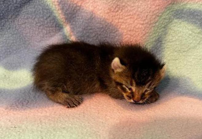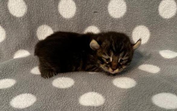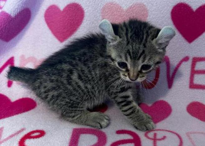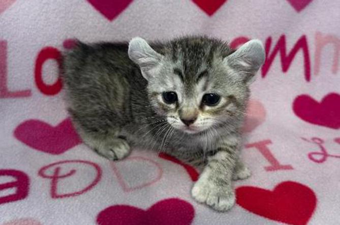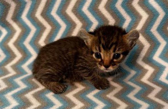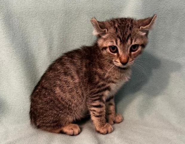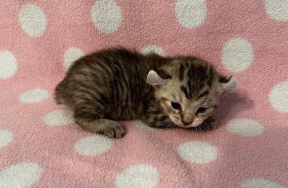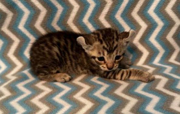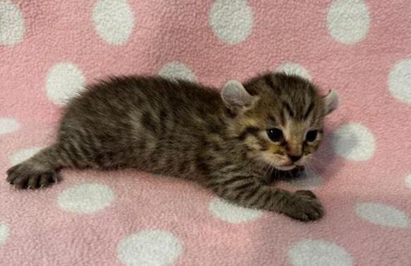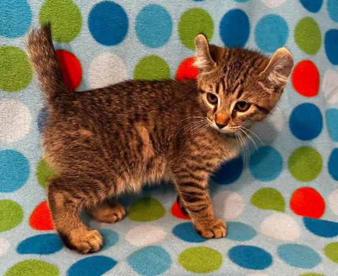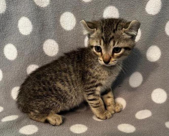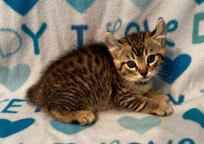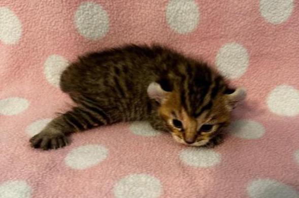 5g....Brown Spotted Tabby Female w/curled ears, 4 polydactyl feet & shortened tail. I am available