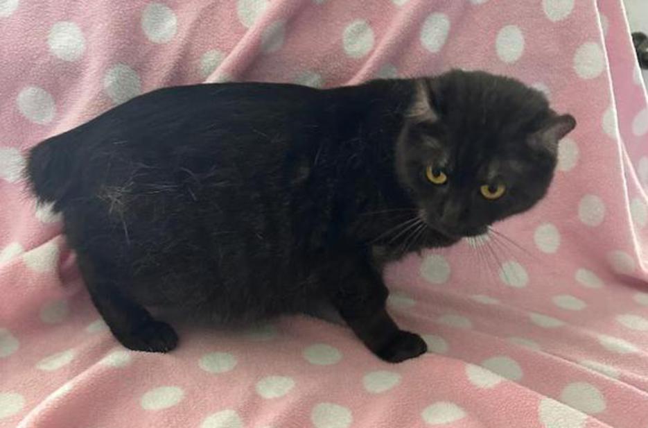 This is Rottins Gotta Have Faith. She is a black smoke female w/curled ears, polydactyl feet & natural short tail. Parents are You are my Sunshine and Looney Tunz